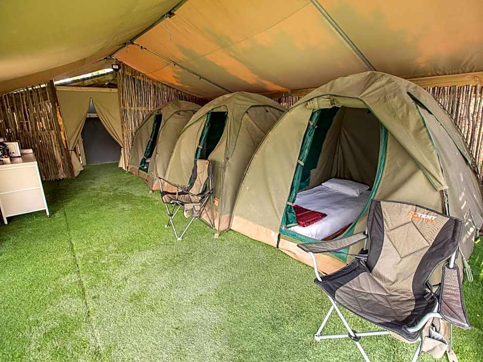 This tent features a hot tub. The tent features a seating area, a mini-bar and a coffee machine. The unit has 6 beds.